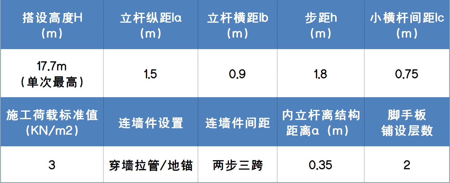 1、平面布置:立杆纵向间距1.5m,横向间距0.9m,内排立杆距离建筑物的距离为0.35m。同步内隔一根立杆的两个相隔接头在高度方向错开距离不小于500mm,其接头距大横杆的距离不大于步距的1/3。