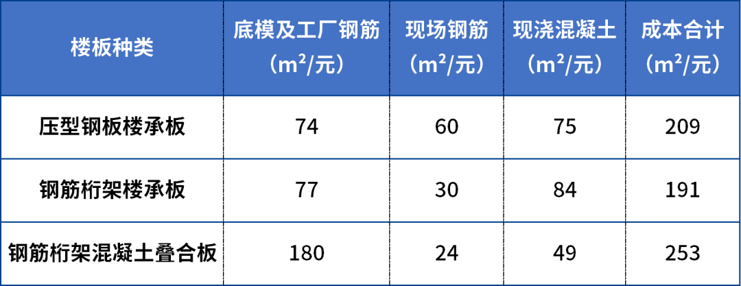 从综合成本的角度,钢筋桁架楼承板经济性最优,比压型钢板楼承板约节省成本10%左右。比混凝土叠合板约节省成本30%左右。